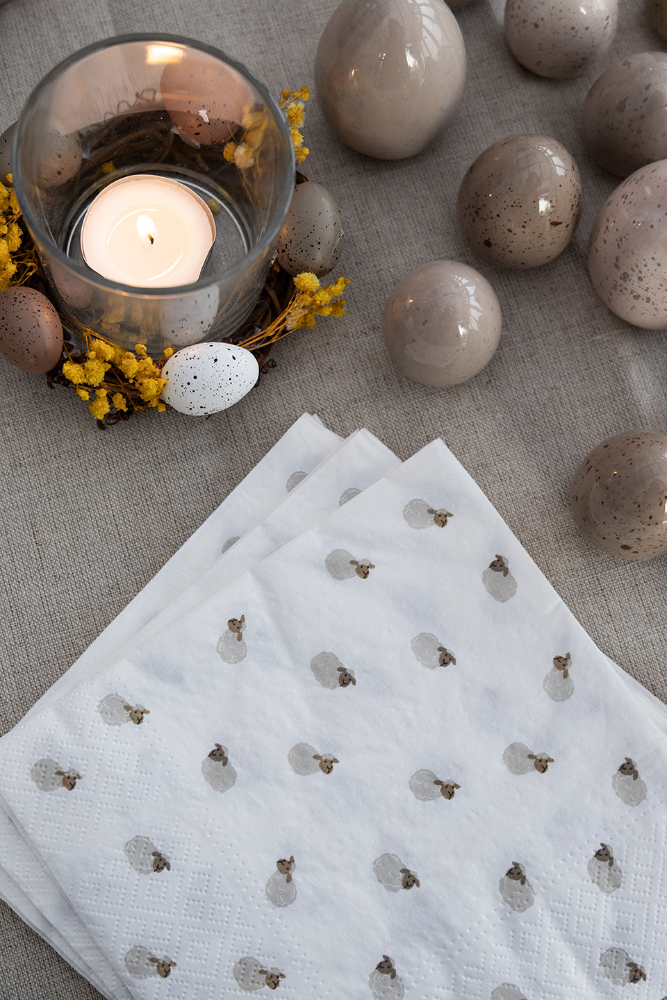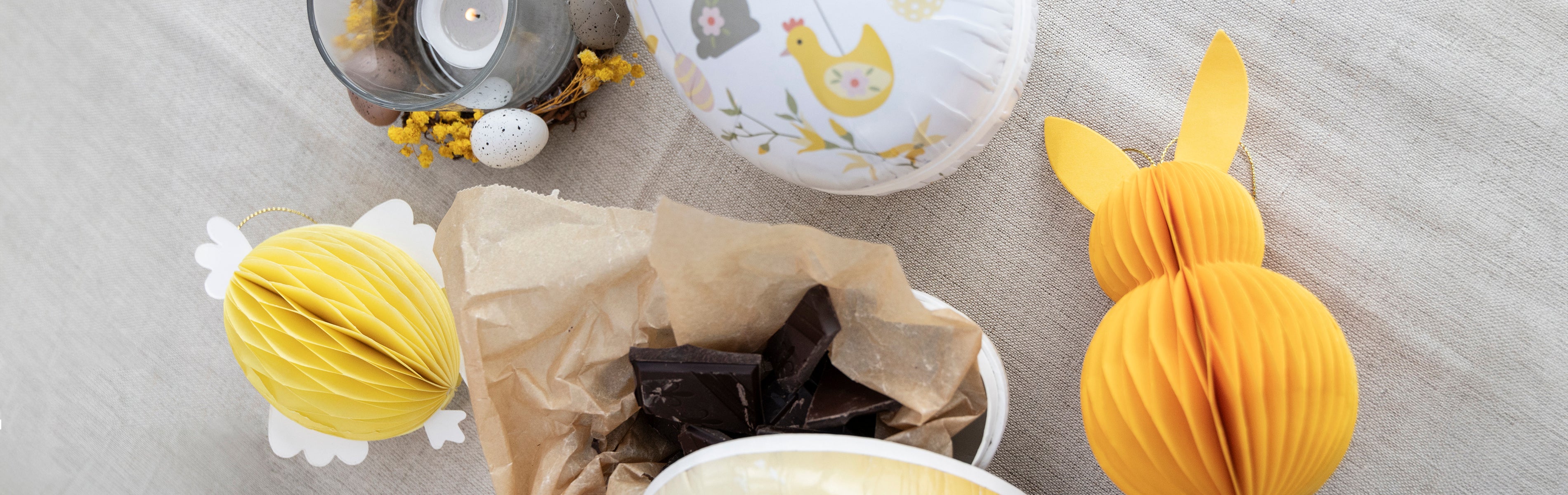 Ostern ist eine herrliche Gelegenheit, um mit seinen Liebsten Zeit zu verbringen. Unsere Osterkollektion versammelt alle traditionellen Motive, die wir von diesem Fest kennen, und kombiniert sie mit dem Gefühl des Frühlings. In unserem Sortiment finden Sie alles von kleinen Hasen, Ostereiern, Servietten, Kerzen im Glas und vieles mehr. Alles, um den schönsten Ostertisch zu decken.