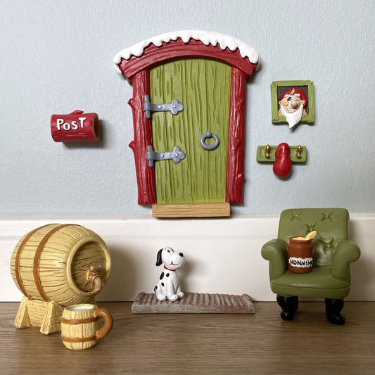 Sobald Ihre Wichteltür angebracht ist, können Sie mithilfe des Wichteltür-Zubehörs weitere Geschichten über den Wichtel erzählen. Vielleicht haben Sie einen Waldwichtel, der rustikal mit Waldtieren um ihn herum lebt und über viele Werkzeuge verfügt, die er ausgiebig nutzt, z. Brennholz hacken. Es kann auch sein, dass Sie Besuch von einem kindlichen Wichtel bekommen, der mit edlem Holzspielzeug lebt, oder von einem backbegeisterten Wichtel, der ständig in der Bäckerei mit weihnachtlichen Köstlichkeiten beschäftigt ist.