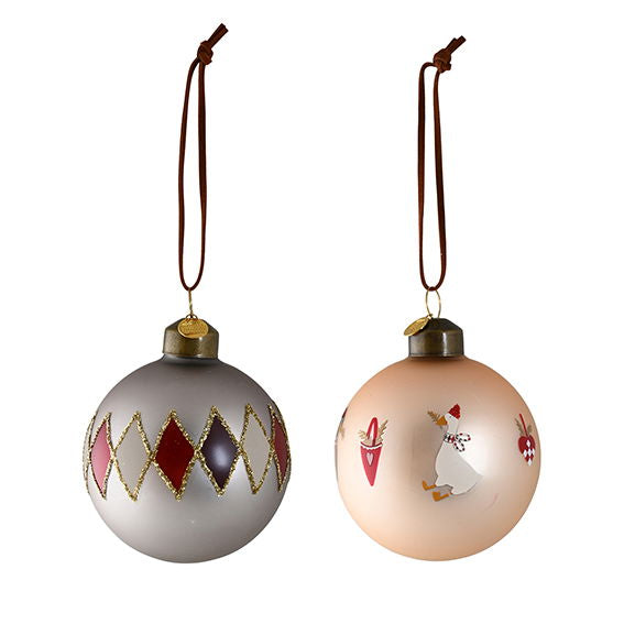 Creme Weihnachtskugeln m. Gänse und Muster