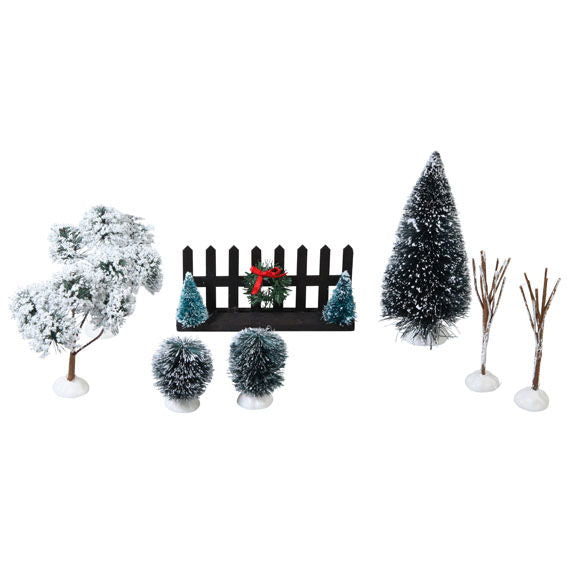 Weihnachtslandschaft m. Zaun und Bäumen